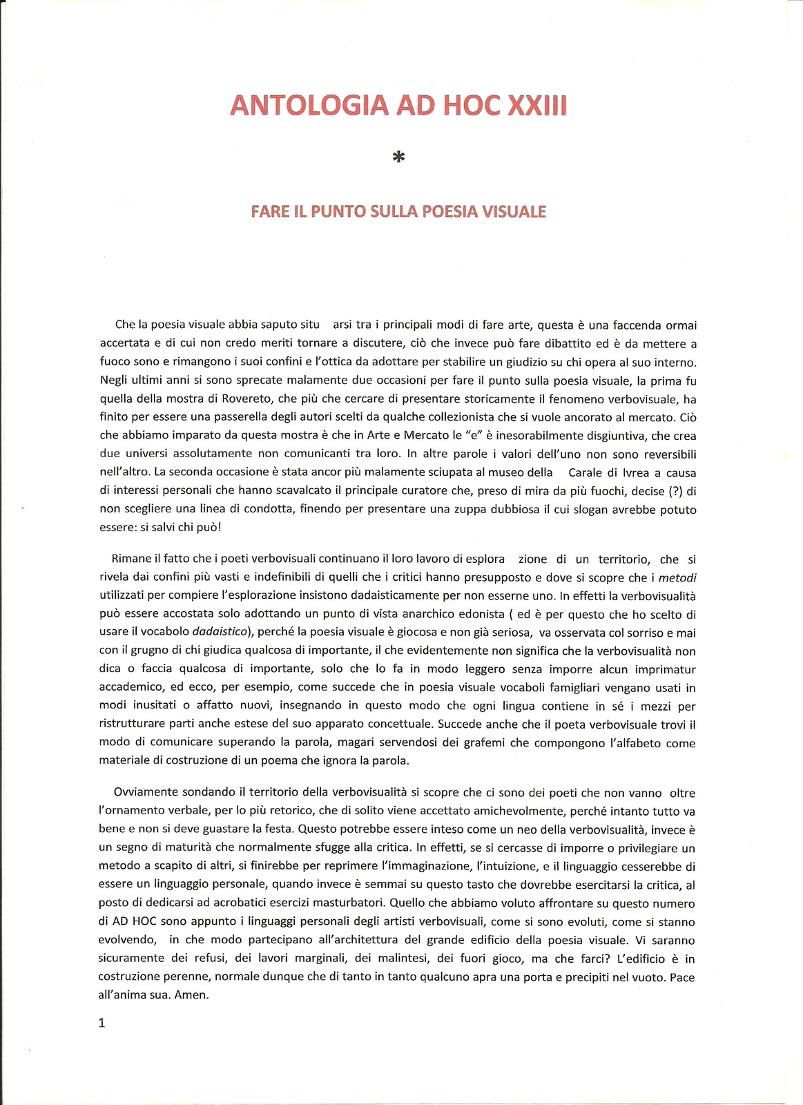 ANTOLOGIA AD HOC XXIIII,  Fare il punto sulla poesia visuale, a cura di SERGIO CENA