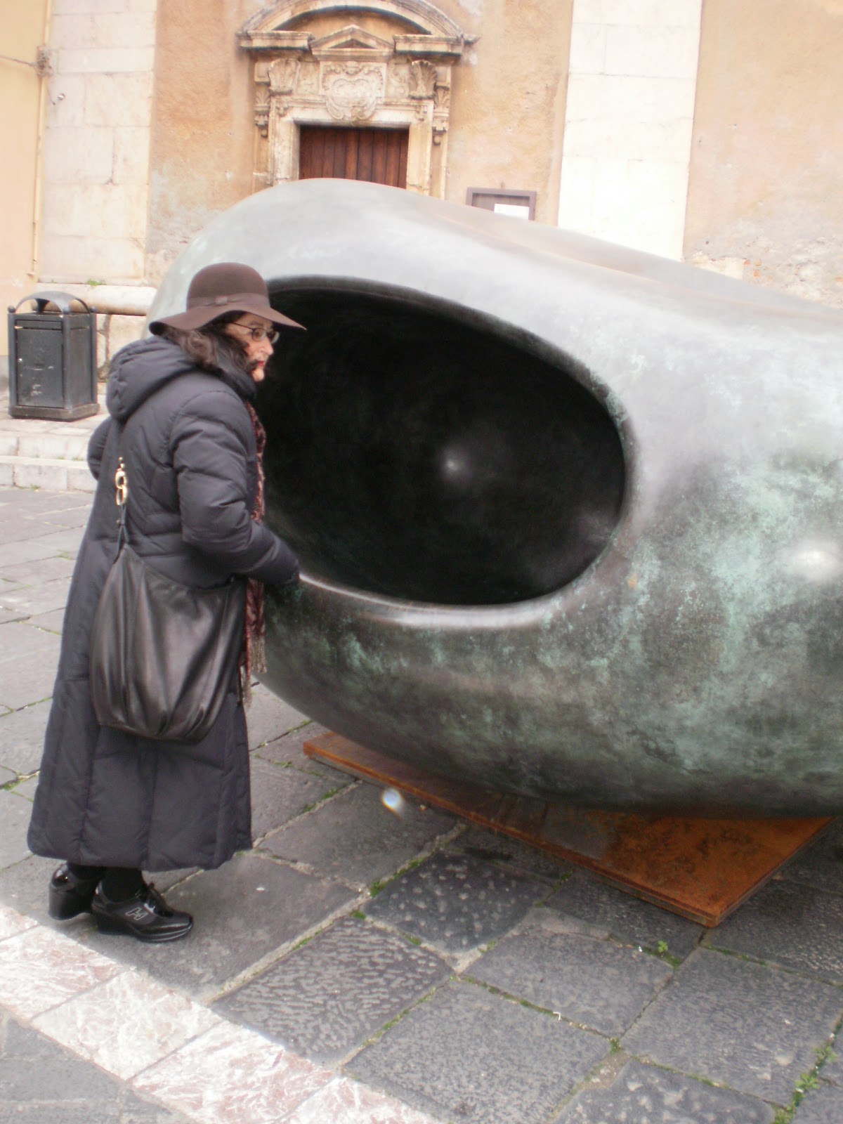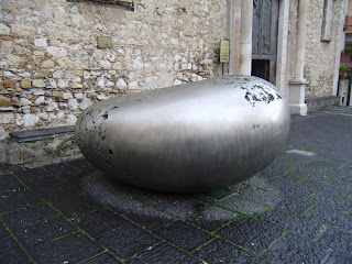 Le sculture in bronzo di Kan Yasuda, artista giapponese, legato alla cultura zen (viste in una Taormina deserta e ventosa)