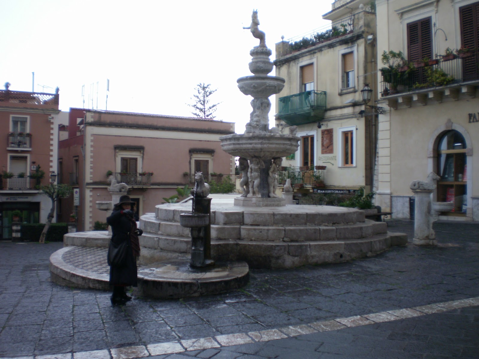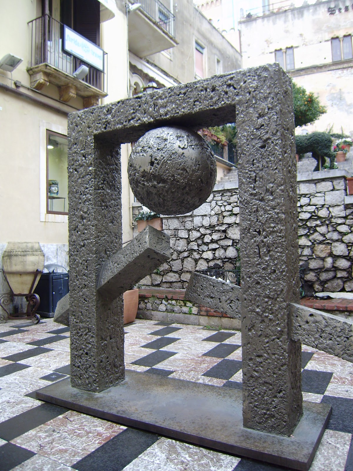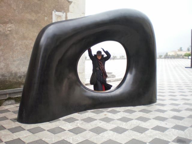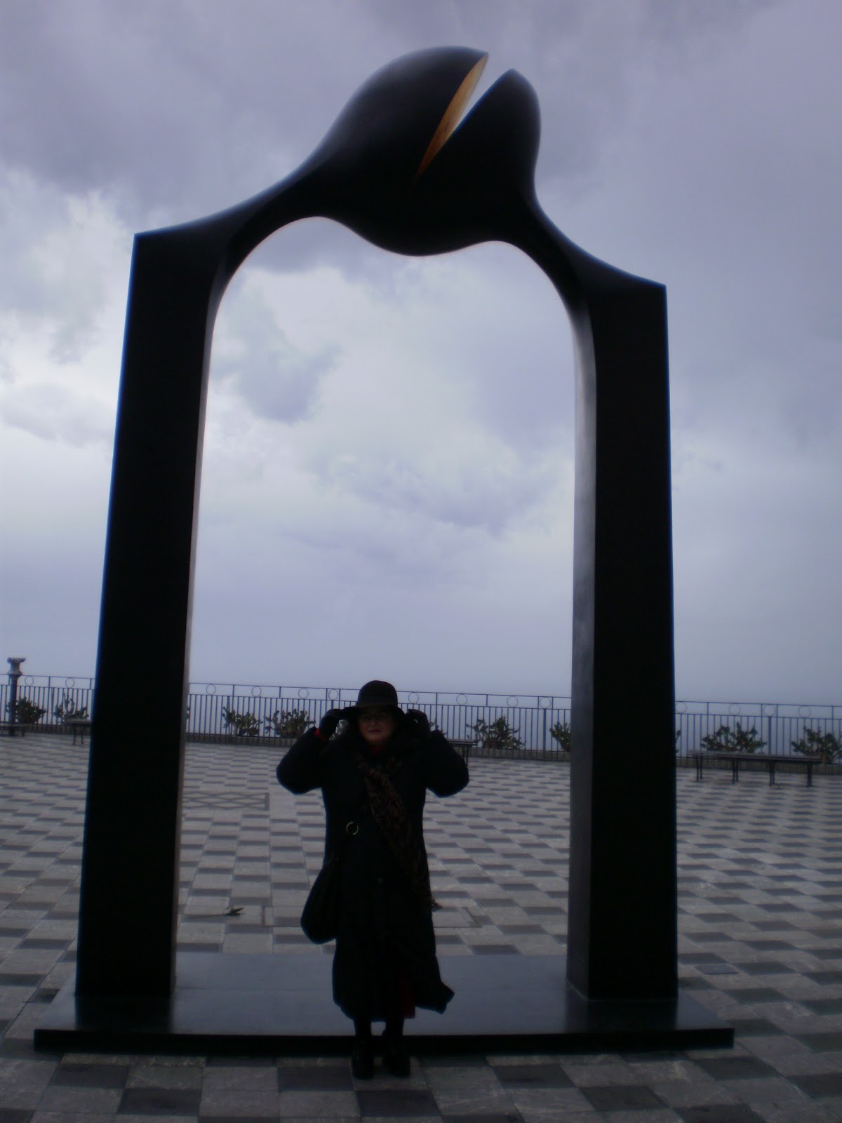 Le sculture in bronzo  di Kan Yasuda, artista giapponese, legato alla cultura zen (viste in una Taormina deserta e ventosa)