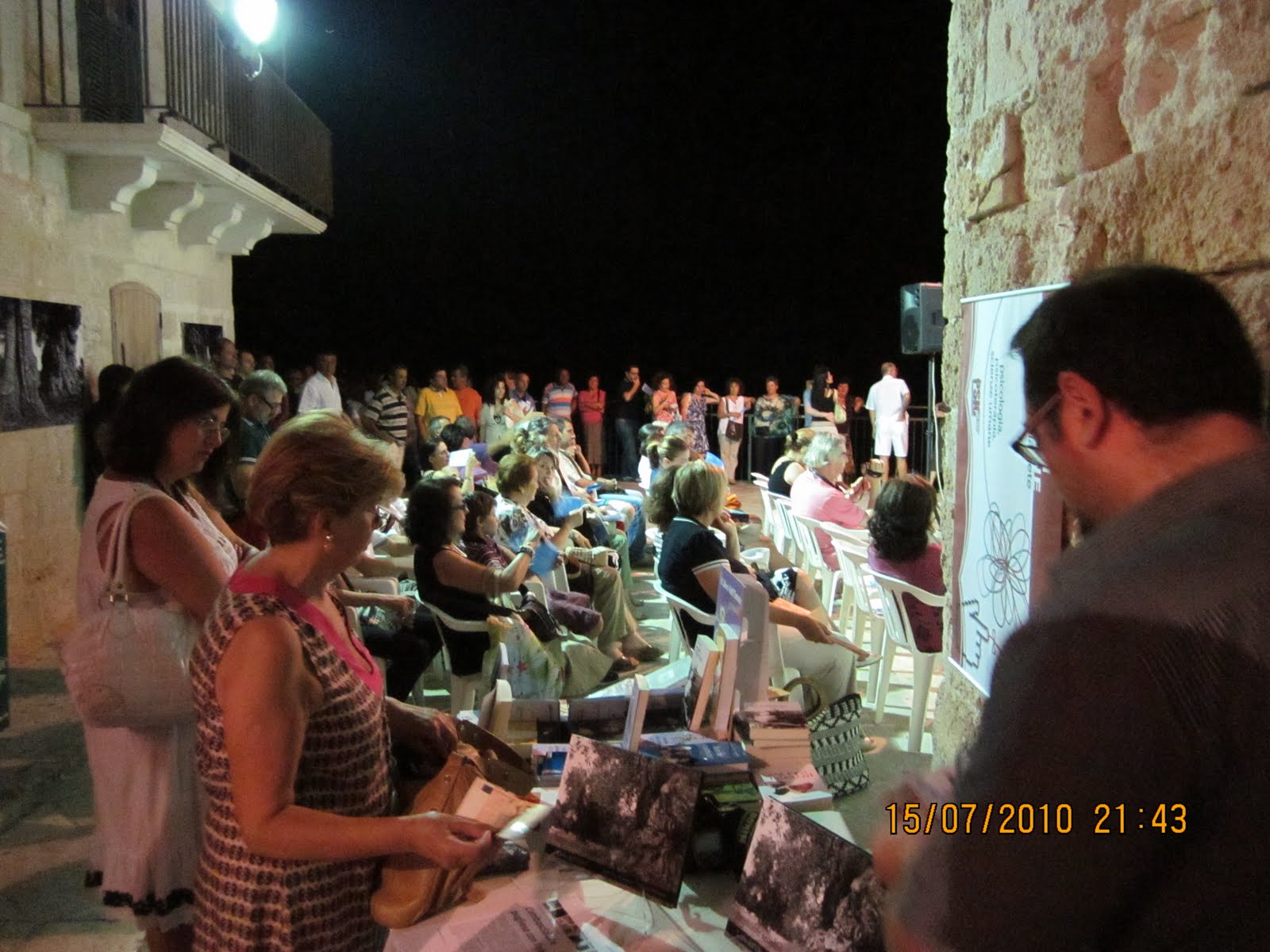 Foto ricordo della presentazione con Anna D’Elia, a Polignano a mare, il 15 luglio, in una piazzetta piena con vivaci gruppi addossati alla balconata su un mare splendido. Mi ha fatto molto piacere rivedere parenti, amici e Vladimir Luxuria, conosciuta a Cerveteri, anni fa (eravamo ospiti del Festival Mediterranea 2005, organizzato da Filippo Bettini)